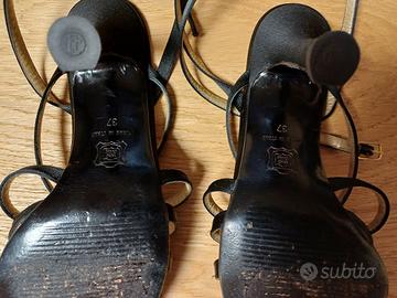 Sandali versus by Gianni Versace in Raso e pelle neri in ottimo stato tg 37 allacciati aulla caviglia con scatola originale lunghezza tomaia 24 cm tacco 9,5 cm