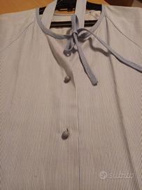 vestaglia donna mille righe in puro cotone bianca e celeste tutta abbottonata si può usare anche come vestito,mai usata. TG 44