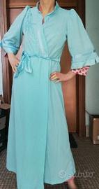 Comoda e ampia vestaglia da camera di tipo classico, color verde acqua, con ampia manica al gomito, lunga sotto il ginocchio, coprente, non trasparente ma al tempo stesso molto leggera.