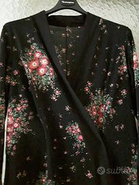 Vestaglia da camera doppio petto a motivi floreali, completa di cintura.