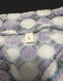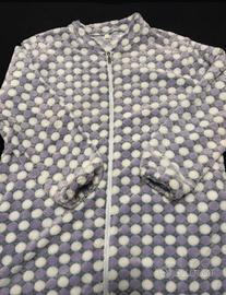Morbida vestaglia da donna in pile con fantasia a pois. - Chiusura con zip frontale. - Maniche lunghe. - Lunghezza al ginocchio.