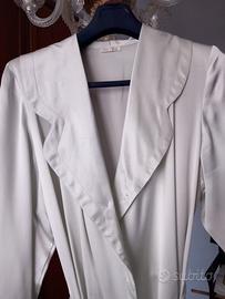 lung 130 da spalla a spalla 40 vita 50 manica 56, taglia M color acqua ,effetto raso ,tasche laterali inserite, spalline,bordo maniche e orlo arrotondati, allacciatura interna con sormontato e cintura a nastro, elegantissima