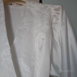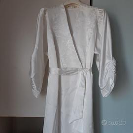 VENDO ELEGANTE VESTAGLIA A KIMONO, COLORE BIANCO PANNA, POLIESTERE DI QUALITA' - LAVORAZIONE DAMASCATA - DETTAGLI CURATI TAGLIA 4a - IL MODELLO A KIMONO LA RENDE VERSATILE ALL'INDOSSO SU OGNI TIPO DI CORPORATURA MAI USATA SCATOLA ORIGINALE PREZZO 15 EURO POSSIBILE LA SPEDIZIONE