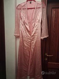 Elegante vestaglia in raso rosa, perfetta per aggiungere un tocco di fascino.