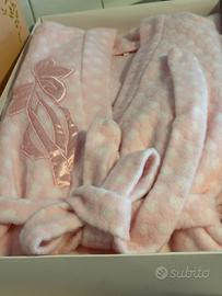 Vestaglia rosa tessuto morbido invernale con ricamo laterale e vestaglia trapuntata colorata con tasche taglia M-L