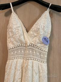 Vestito lungo in pizzo, taglia unica , colore bianco, pantaloncino incorporato, nuovo con cartellino