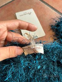 Tessuto unico: Effetto 'pelo' o 'peluche' in un magnifico colore blu petrolio / blu scuro (non il solito nero). La texture è morbida e visivamente d'impatto.