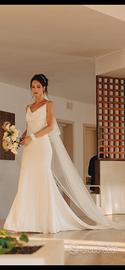 Vendo vestito da sposa Pronovias, modello Juno del 2022, taglia pronovias 38 (io sono una 42 normalmente), acquistato il 28 agosto 2022 e indossato il 01 settembre 2022. Lavato il giorno dopo il matrimonio presso tintoria di Pronovias, sono disponibili tutte le ricevute sia del vestito che della tintoria. Il vestito non è stato ritoccato, solo l’orlo.