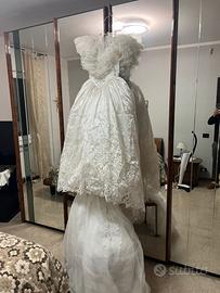 Vendo Abito da sposa vintage in pizzo in stile principesco taglia M vestibilità ampia grazieal corpetto strutturato Ik vestito appena lavato e pulito