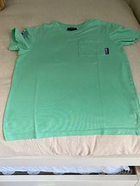 É per bambini. É di colore verde chiaro di taglia 11/12 anni con scritte sulla schiena