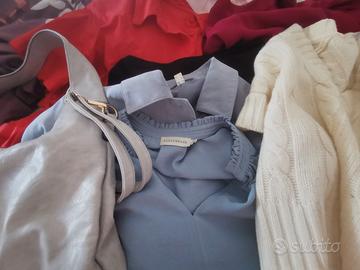 Vendo tutto insieme camicia, giacca, giacchetto, gonna, maglia,borsa grigia chiara, totale 6pz più la borsa tutto in ottime condizioni 👍