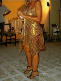 Originale e bellissimo vestito con profonda scollatura sulla schiena. Spalline, zona seno e circonferenza torace regolabili. Indossato solo una volta. Perfetto anche come abito da sera. Esalta in maniera incredibile la figura