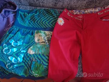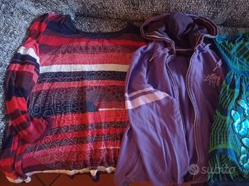 Desigual XL ma vestono piccolo, pantaloni tg 30, felpe Tezenis, magliette varie e una collana fatta a mano in pietre dure e resina. tutto in buono stato e perfetto per la primavera. chiedo in cambio uno snack per il mio cagnolino.ovviamente non spedisco, ritiro a Terradura di due carrare.