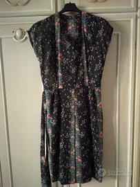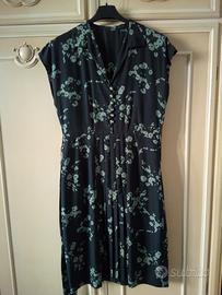 1 vestito in cotone a fiorellini con rose azzurre e celesti con cintura solo sulla schiena. Taglia: L/44/46. Misure: 100Hx40(spalle)cm.