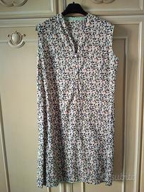 1 vestito poliestere a fantasia bianca e verde con cintura. Taglia: L/44/46. Misure: 106Hx50(spalle)cm.