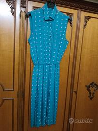 Vendo a € 3 al pezzo vestiti in cotone leggero taglia M con bottoni e colletto in buone condizioni. 1- abito smaniccato in azzurro con gonna a pieghe 2- abito a manica corta di colore verde a pallini bianchi