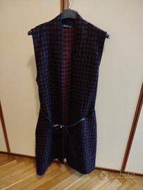 - gilet lungo smanicato taglia unica con cinturino in vita colore nero e bordeaux