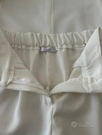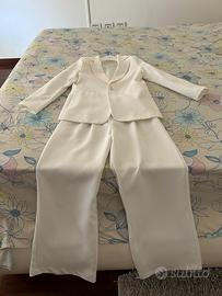 Raffinato completo da bambina firmato Liu Liu, composto da giacca e pantalone a palazzo. Veste taglia s bambino, adatto per ragazza dai 10/11anni.Realizzato in tessuto di alta qualità, questo tailleur bianco è perfetto per cerimonie, eventi eleganti o occasioni speciali.