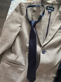 Vestito utilizzato una volta, grigio e blu scuro, con cravatta chiusura pantaloni cerniera e bottoni, il vestito si chiude con bottoni.