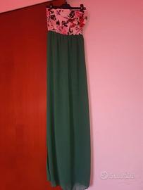 Abito lungo con spacchi laterali di colore verde veste aderente la parte superiore del vestito è floreale che riprende il vestito adatto per eventi , e cerimonie come battesimo, cresime taglia M