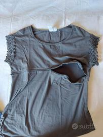 3 magliette a maniche corte, quella verde ha la cerniera per per essere usata anche durante l'allattamento