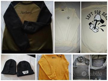 La maglietta nera è marca Alcott. Un pantalone marca Boy London. I pantaloncini marca Kappa ed altre.. Usati pochissime volte. Taglia s. Tutto a 6 euro.