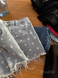 6 magliette di cotone, 4 magliette sportive, 2 canottiere di cotone e 1 sintetica, un pantalone nero sinterico gamba larga, un pantalone in denim leggero tipo pinocchietto e un pantaloncino jeans corto corto. Vendo in blocco.