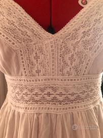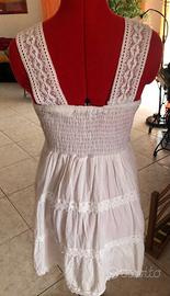 Vestitino bianco in cotone e pizzo , fresco e leggero, non trasparente perché con fodera .