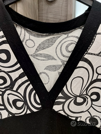 Vestitino cotone leggero Manichina corta punto bambola Scollo a V Vestibilità morbida Taglia S/M Fascia nera centrale che evidenzia il punto vita