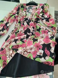 Vestitino fantasia floreale su sfondo nero, taglia s/m, marca Mixeri, con sottoveste nera, come nuovo, non è da stirare.