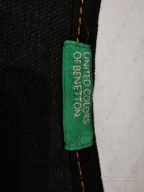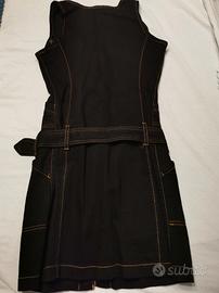 Vestitino jeans nero Benetton con cinturone. Cuciture arancione. Taglia xs