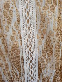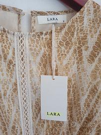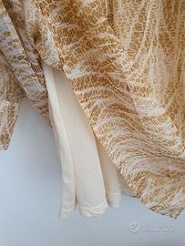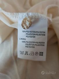 Vestitino leggero a maniche lunghe, fantasia beige, completamente foderato. taglia M. lungo circa 90 cm dalla spalla. in poliestere. Nuovo, mai usato, con cartellino ma senza confezione