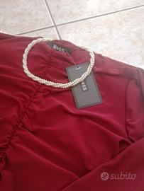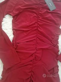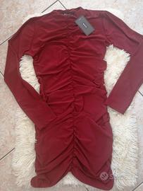 Vestitino maniche lunghe drappeggiato color borgogna - NUOVO, con cartellino. Taglia unica, ma vestibilità fino ad una L. Marca: M@SS Nuovissimo, con etichetta. Possibile spedizione.