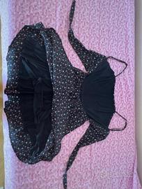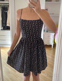 Vestitino con doppia gonna, stampa a fiorellini, schiena scoperta che si chiude a fiocco, spalline regolabili. Come nuovo