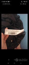 Vestito nero Piazza Italia con bordo inferiore traforato (sia davanti che dietro). Chiusura sul retro con zip. Sul seno sono presenti le coppe.