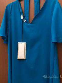 Vestitino color turchese con scollo a V dotato di cinta abbinata in stoffa. Ottime condizioni, mai usato e nuovo con cartellino.