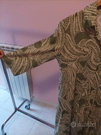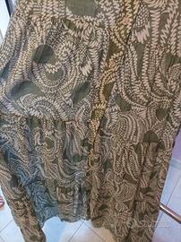 Vestito in 100% cotone Made in Italy, fresco e leggero, in una raffinata tonalità di verde arricchita da disegni chiari che donano luminosità.