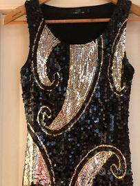 Vestito a maglia con paiettes d’oro e d’argento.