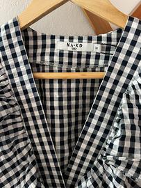 Vestito a quadretti, senza maniche, scollo a V, volant in 100% cotone. Nuovo con ancora il cartellino. Adatto per la stagione autunnale/primaverile o in piena estate