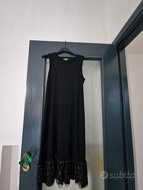 Vestito a maniche lunghe con un design a righe orizzontali. - Dettaglio con paillettes sul fondo. - Scollo rotondo + sotto veste.