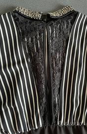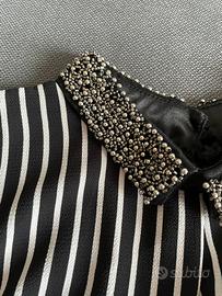 • Parte superiore con righe verticali bianche e nere, che slanciano la figura