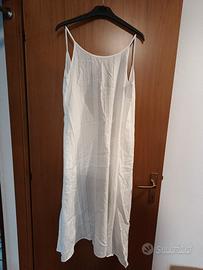 Vestito leggero e arioso, perfetto da indossare sopra il costume da bagno. Il tessuto presenta una trama a righe verticali.