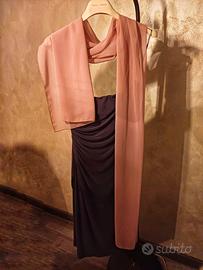 Elegante abito da cerimonia taglia 42 in poliestere colore grigio con inserto di brillantini a forma di fiore.