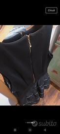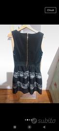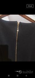 Elegante abito smanicato x cerimonia, tessuto elasticizzato con dettagli in pizzo, taglia S anche se l'etichetta riporta una L, probabilmente un errore di stoccaggio...x me che sono alta 1.63 l'abito arriva appena sopra il ginocchio, l'abito è aderente nella parte alta,mentre la gonna risulta morbida, ha una elegante cerniera color oro lungo la schiena che si ferma al di sotto della fascia elastica in vita...