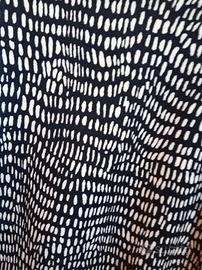 Vestito al ginocchio, veste largo senza cintura. Non possiede cintura,ma possiede asole per cintura. Cerniera sul dietro, tg S. Materiale poliestere 85%, elastame 15 %.