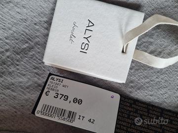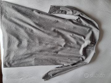 Vestito Alysi donna nuovo con cartellino colore grigio scollo leggermente a v bottoncino bianco sui polsini ha due tasche e due laccetti con estremità perla colore ambra veste comodo 100% lana