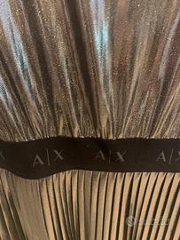 Vestito argentato , cinta elastica in vita con iniziali AX ( Armani Exchenge) , parte bassa gonna plissettata , maniche corte