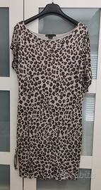 Vestito maculato di rayon e spandex, ottima vestibilità. Veste bene anche una M. Torace 42 cm, lunghezza 88 cm.