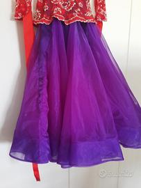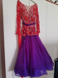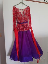 vestito come in foto per ballerina danze standard, lo ha indossato mia figlia che porta taglia S ed è alta 1.64. mandate messaggio per tutte le info del caso.