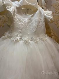 vestito battesimale bimba, 12 mesi, colore bianco, nuovo senza cartellino, dotato di corpetto